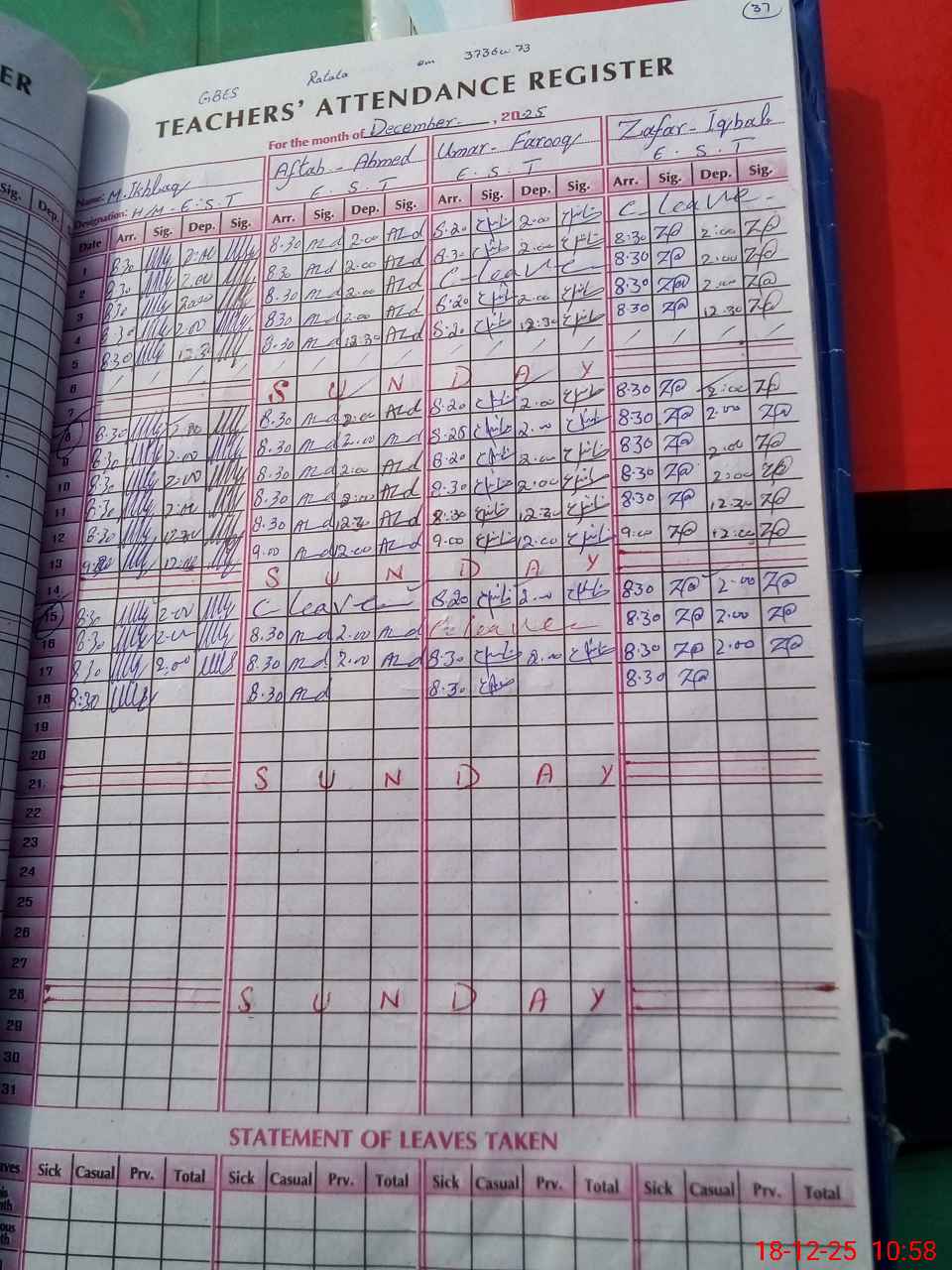 | 37**** | Ab**** Ma**** | PST Arts | Regular | 0 | 0 | 0 | 0 | 0 | 0 | 0 | 0 | 0 | Casual |