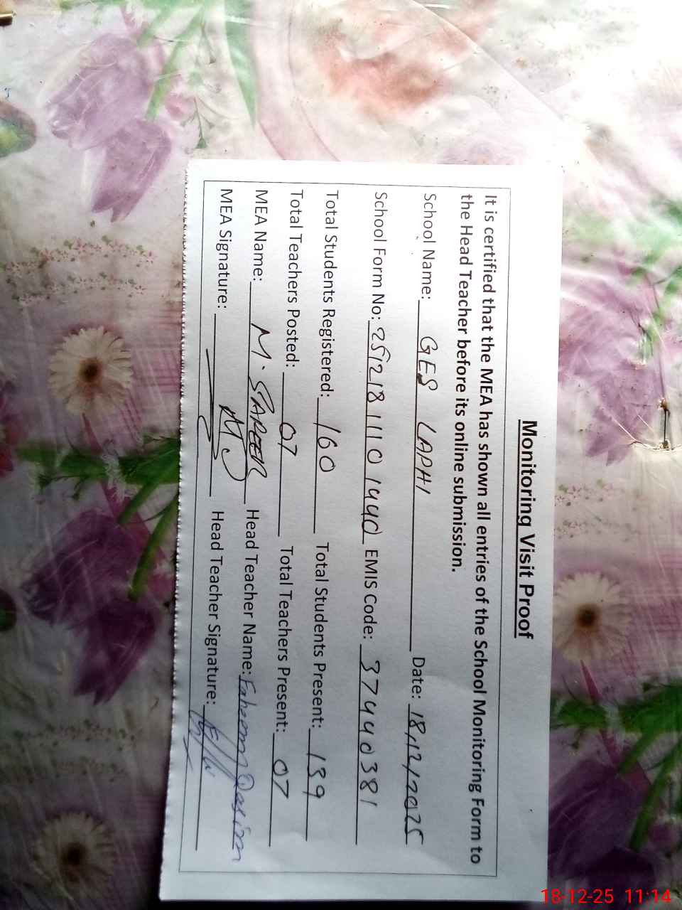 | EMIS Code: 37440381 | Name of School: GES LAPHI | |||