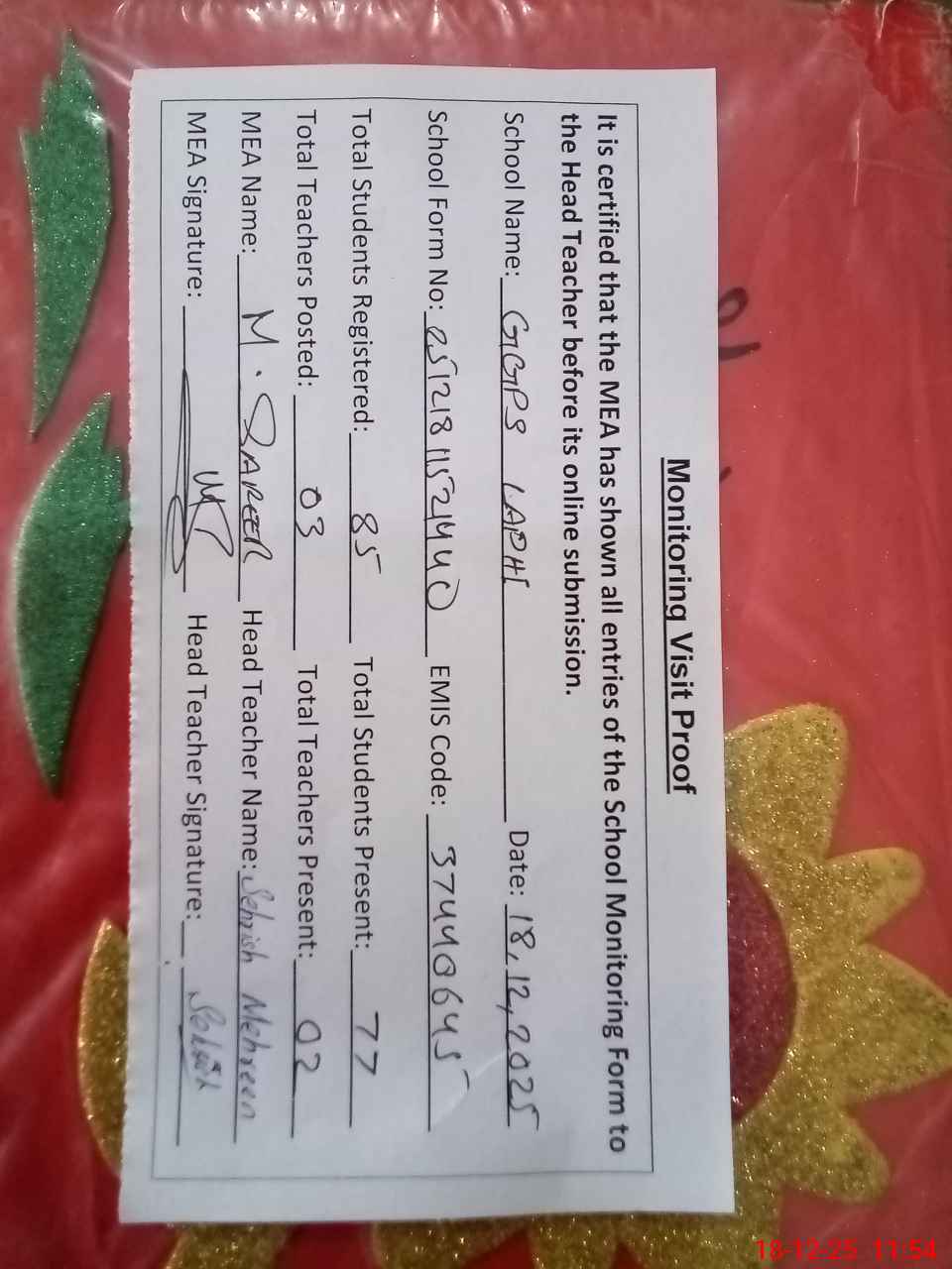 | EMIS Code: 37440645 | Name of School: GGPS LAPHI | |||