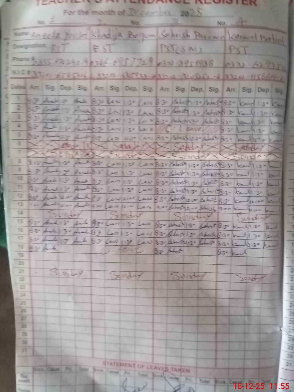 | 38**** | Ha**** Ul**** Kh**** | Temporary | 2 | 0 | 0 | 0 | 0 | 0 | 0 | 0 | 2 | Casual | |