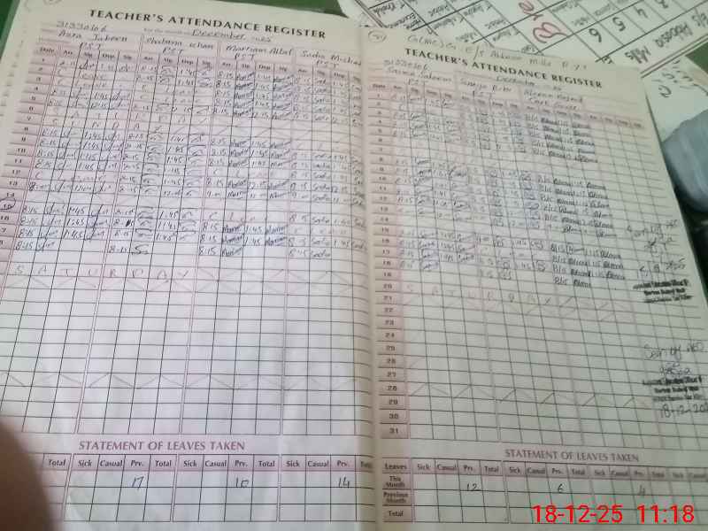 | Total no. of Classrooms: 6 No. of Classrooms Used for Teaching: 4 No. of Classrooms Storing Old Furniture, FTBs, etc: 0Comments if Any: 01 class room is dangerous and Cash book is not available |