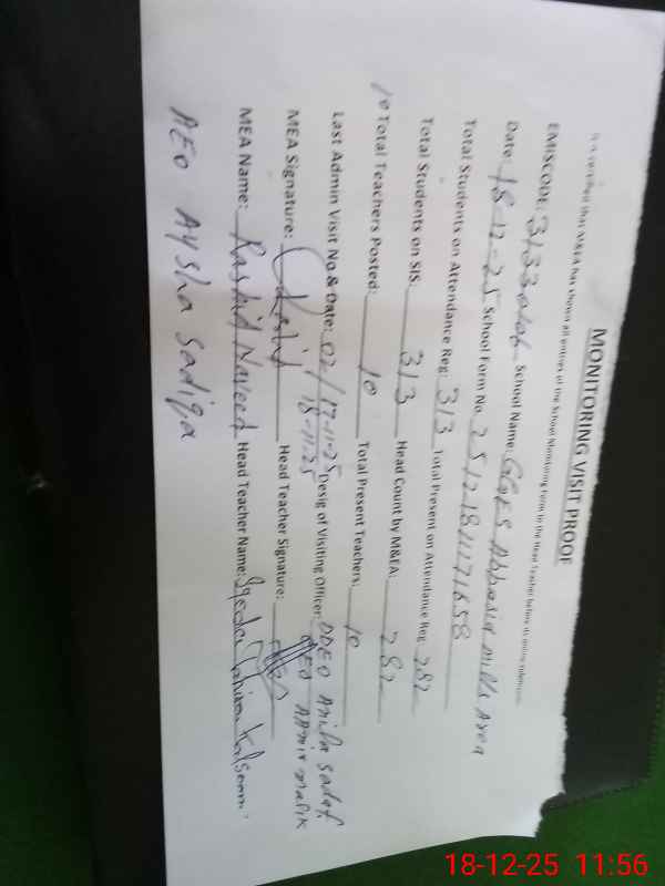 | Certified that this School was Inspected by the Undersigned MEA/DMO Today and the Information Stated Above is as Per Record. | |||||
