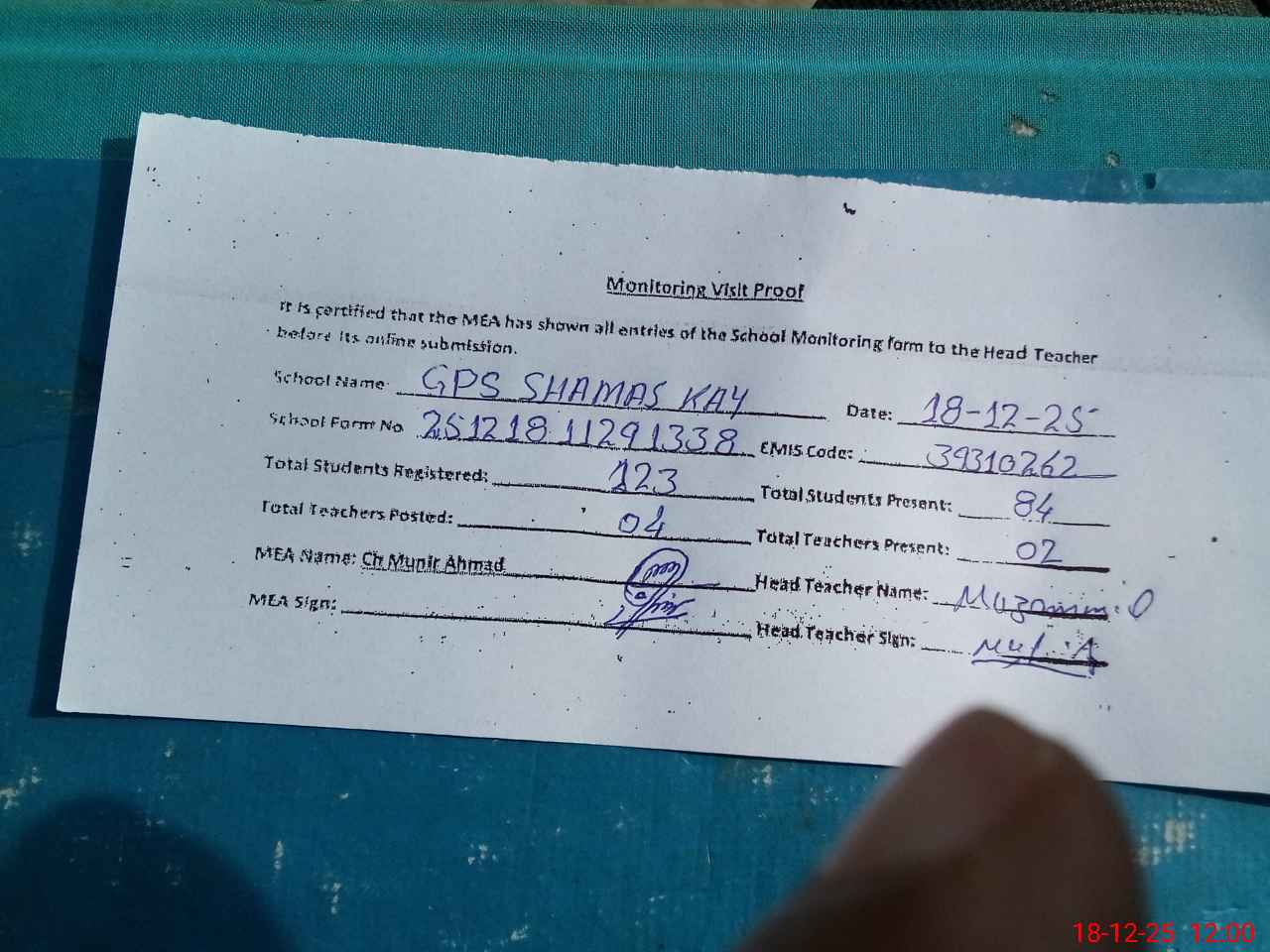 | EMIS Code: 39310262 | Name of School: GPS SHAMAS KAY | |||