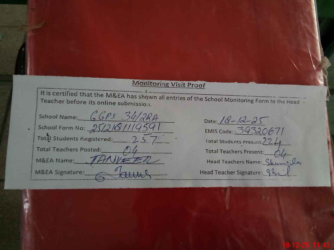 | EMIS Code: 39320671 | Name of School: GGPS CHAK NO.34/2-RA | |||