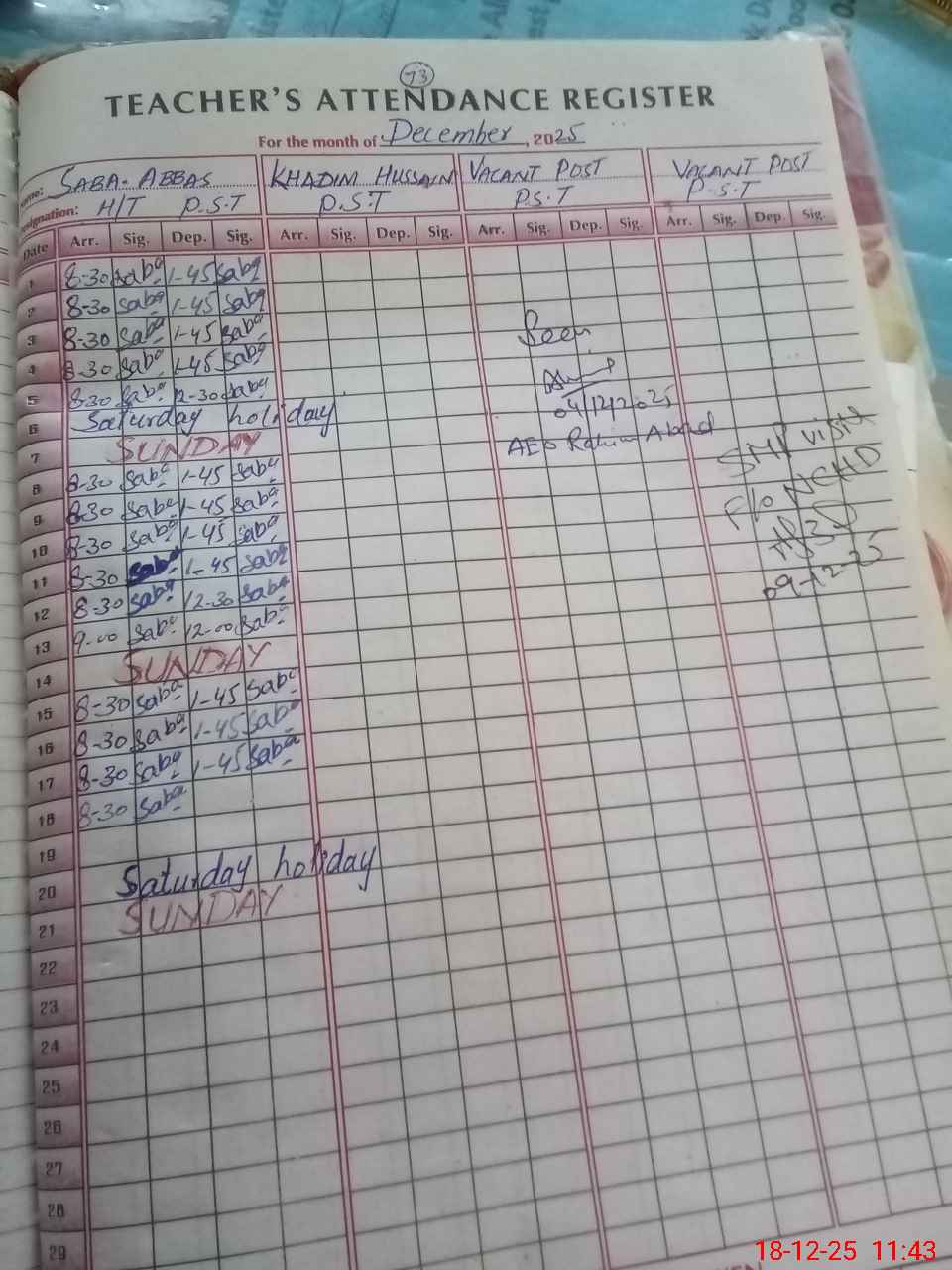 | Name: Sa**** Ab**** Designation: (School Headmaster's/Headmistress's) PST Phone/Cell Number: 03**** |