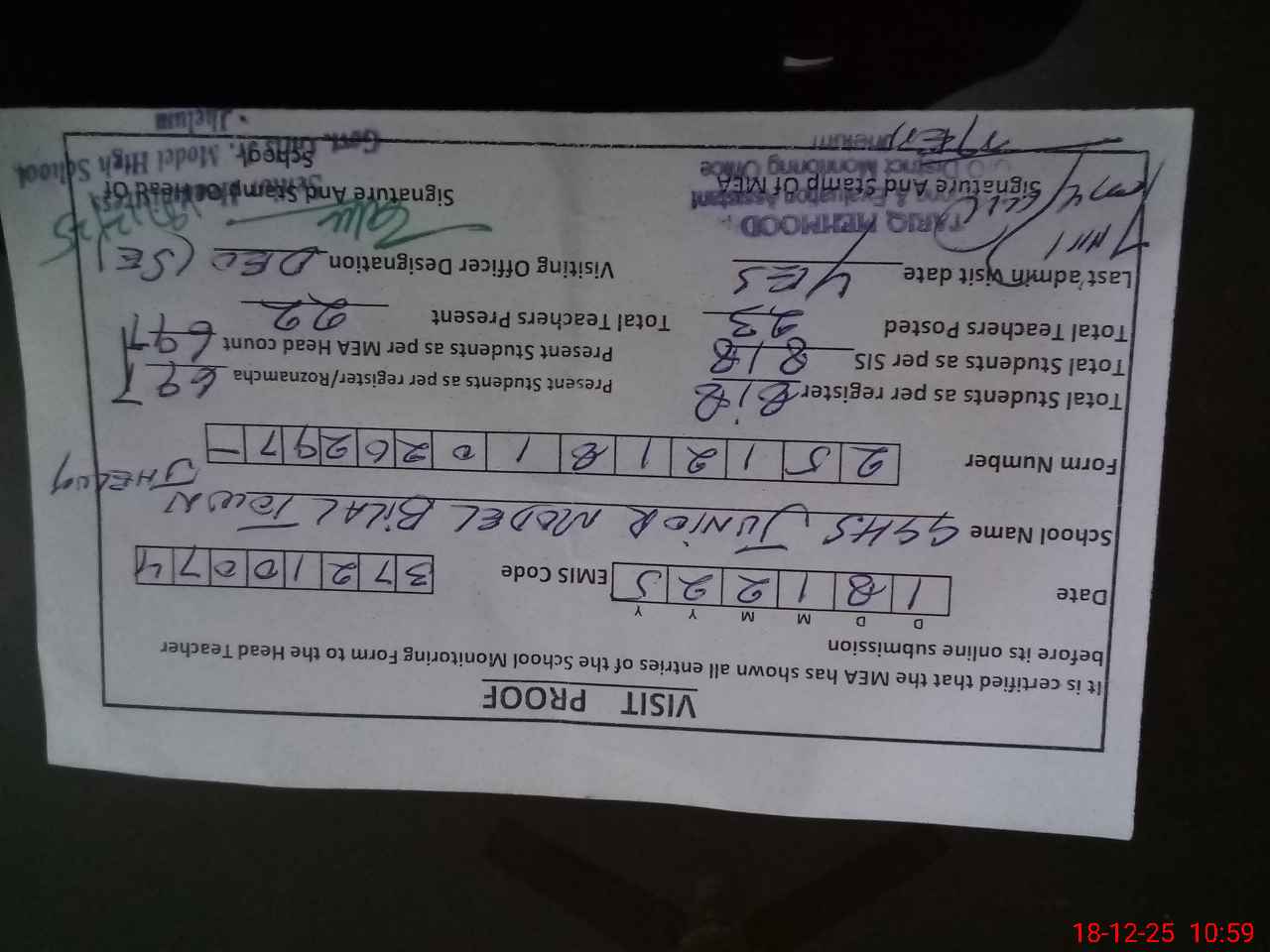 | Certified that this School was Inspected by the Undersigned MEA/DMO Today and the Information Stated Above is as Per Record. | |||||