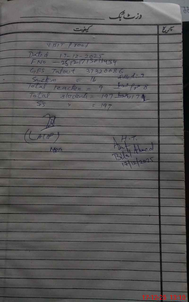| EMIS Code: 37320086 | Name of School: GES TALOOT | |||