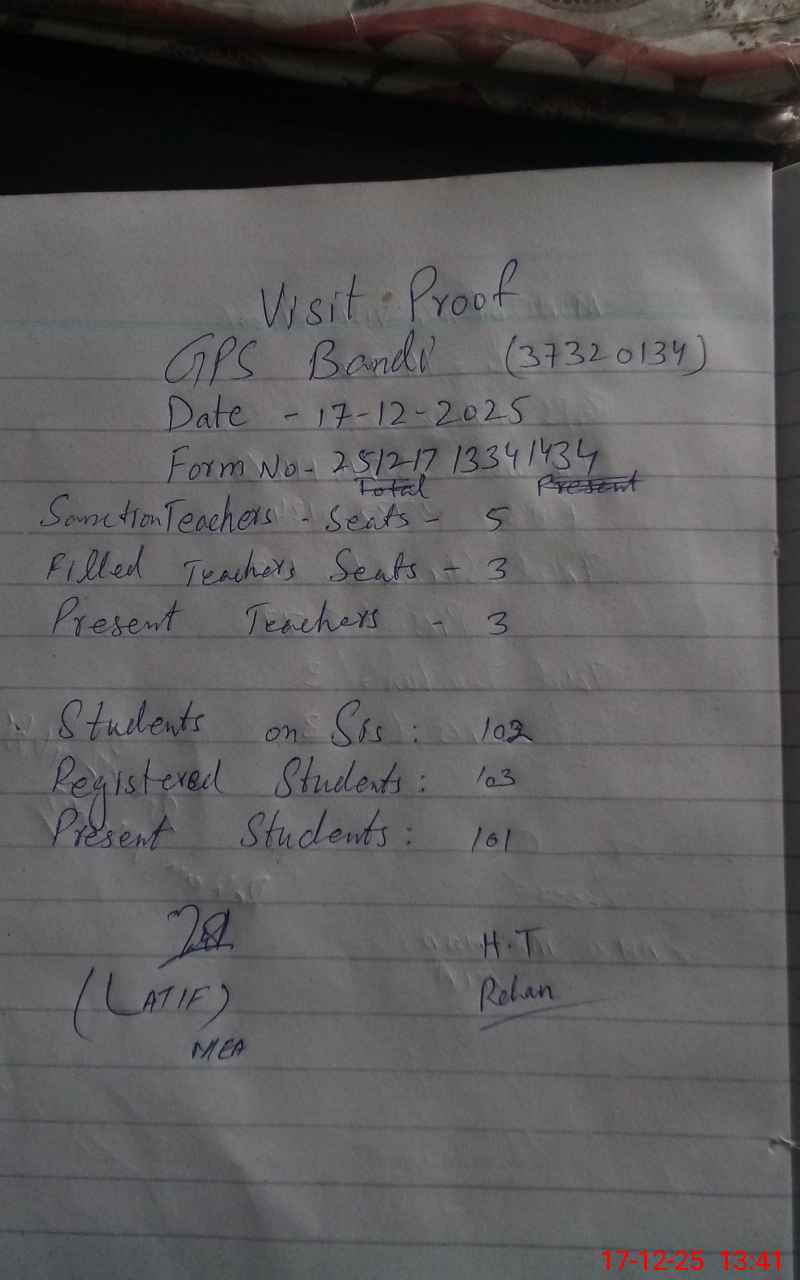 | EMIS Code: 37320134 | Name of School: GPS BANDI (RAWAT) | |||