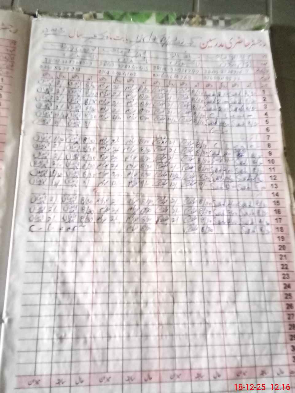 | CNIC | Full Name | Designation | R/C | Absence During Last Calender Month |