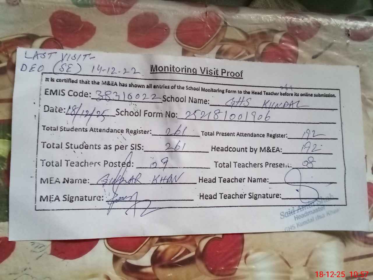 | EMIS Code: 38310022 | Name of School: GHS KUNDAL | |||