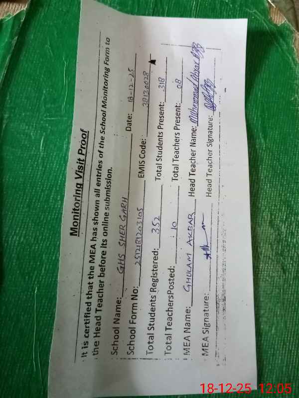 | EMIS Code: 38130028 | Name of School: GHS SHER GARH | |||