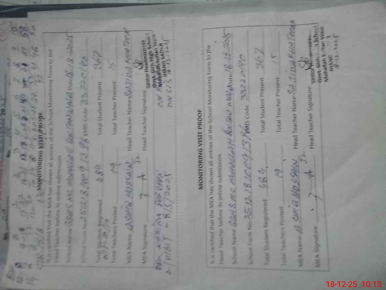 | Monitoring Date: 18-12-2025 | Start Time: 18-12-2025 09:10 AM | End Time: 18-12-2025 10:17 AM | Name of MEA: J-**** AS**** HU**** | |