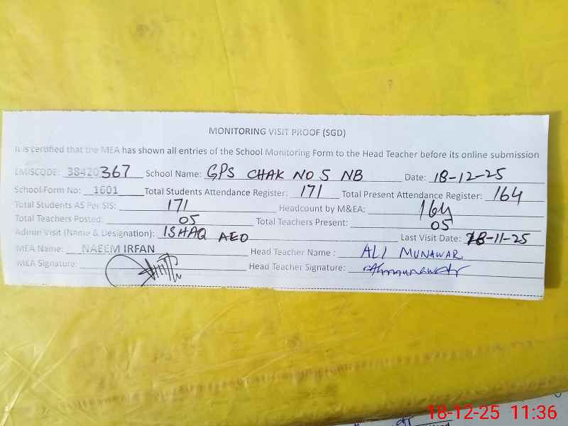 | EMIS Code: 38420367 | Name of School: GPS CHAK NO.50 NB | |||
