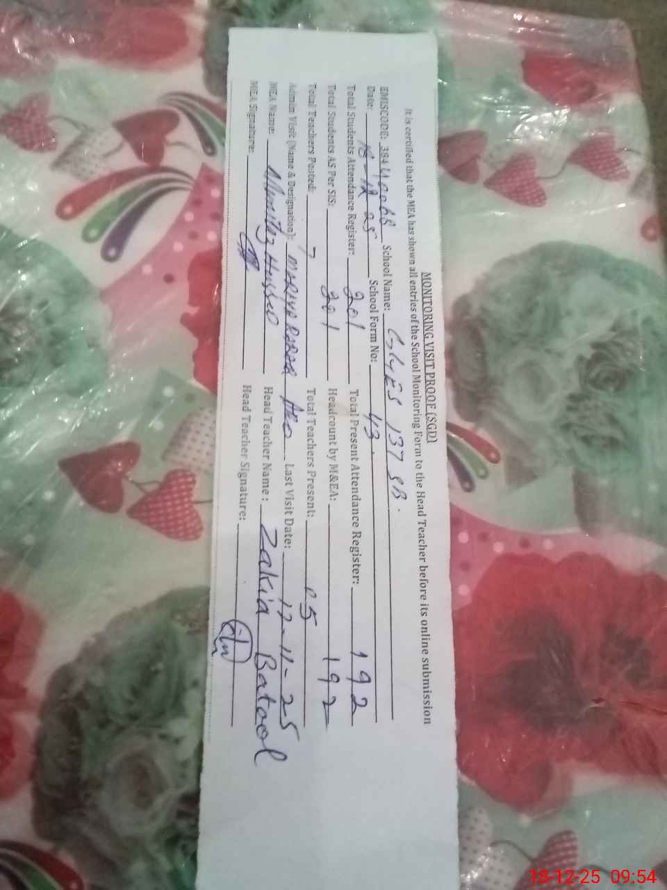 | Certified that this School was Inspected by the Undersigned MEA/DMO Today and the Information Stated Above is as Per Record. | |||||