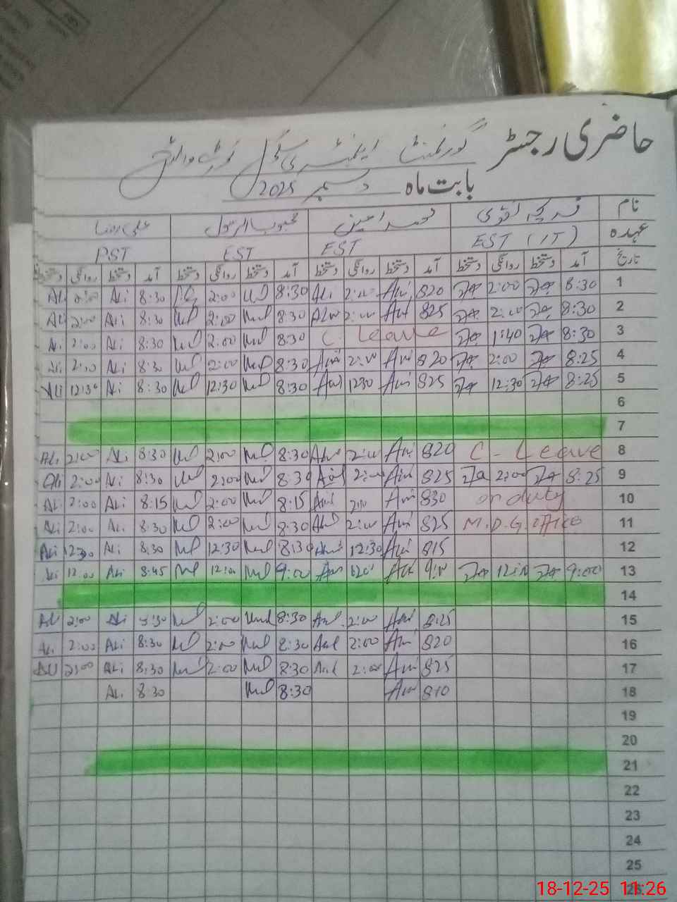 | 00**** | Ra**** Ha**** Al**** | NAIB QASID | Regular | 0 | 30 | 0 | 0 | 0 | 0 | 0 | 0 | 0 | Absent (Un-Authorized) |