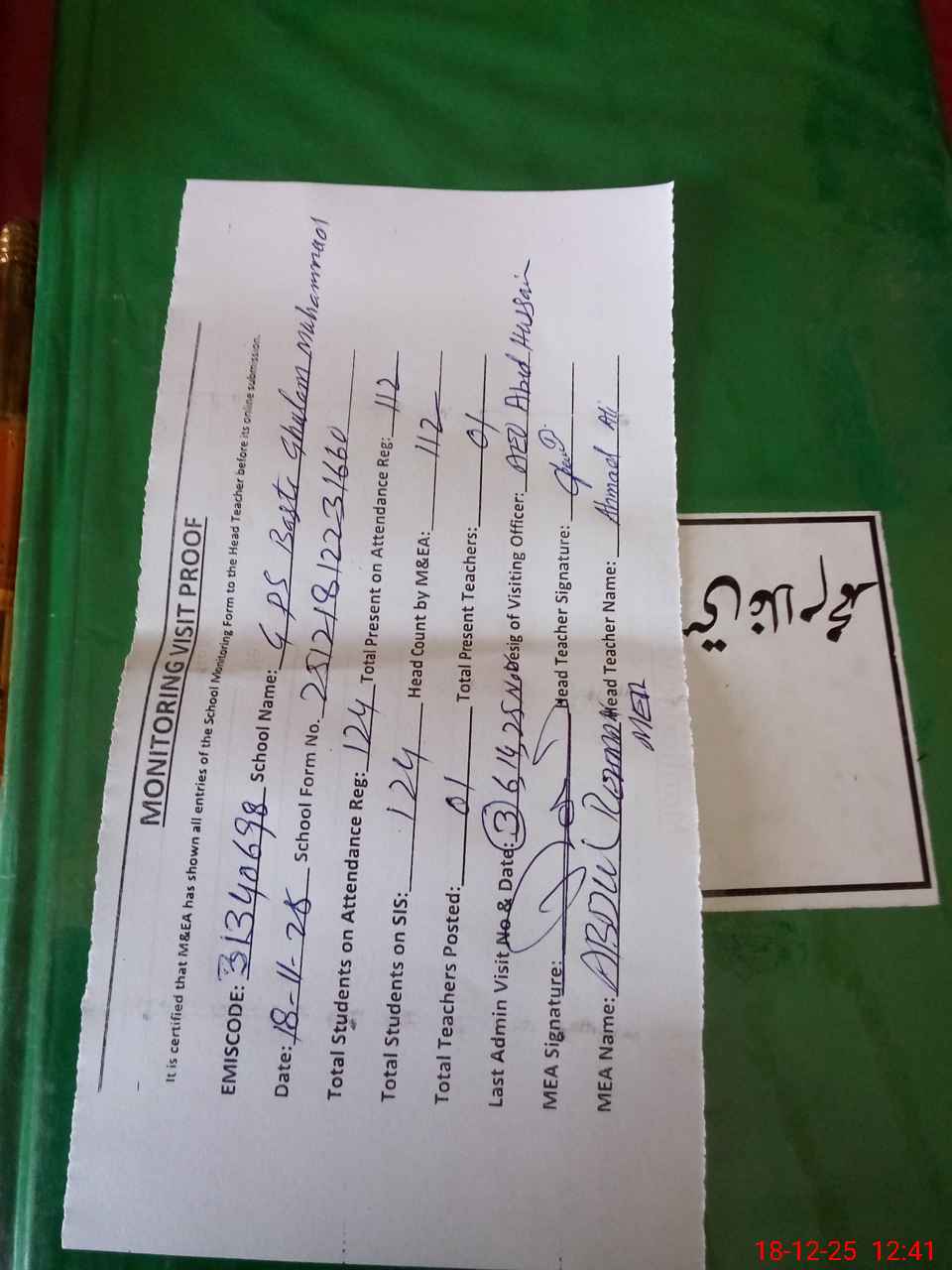 | EMIS Code: 31340698 | Name of School: GPS BASTI GHULAM MUHAMMAD | |||