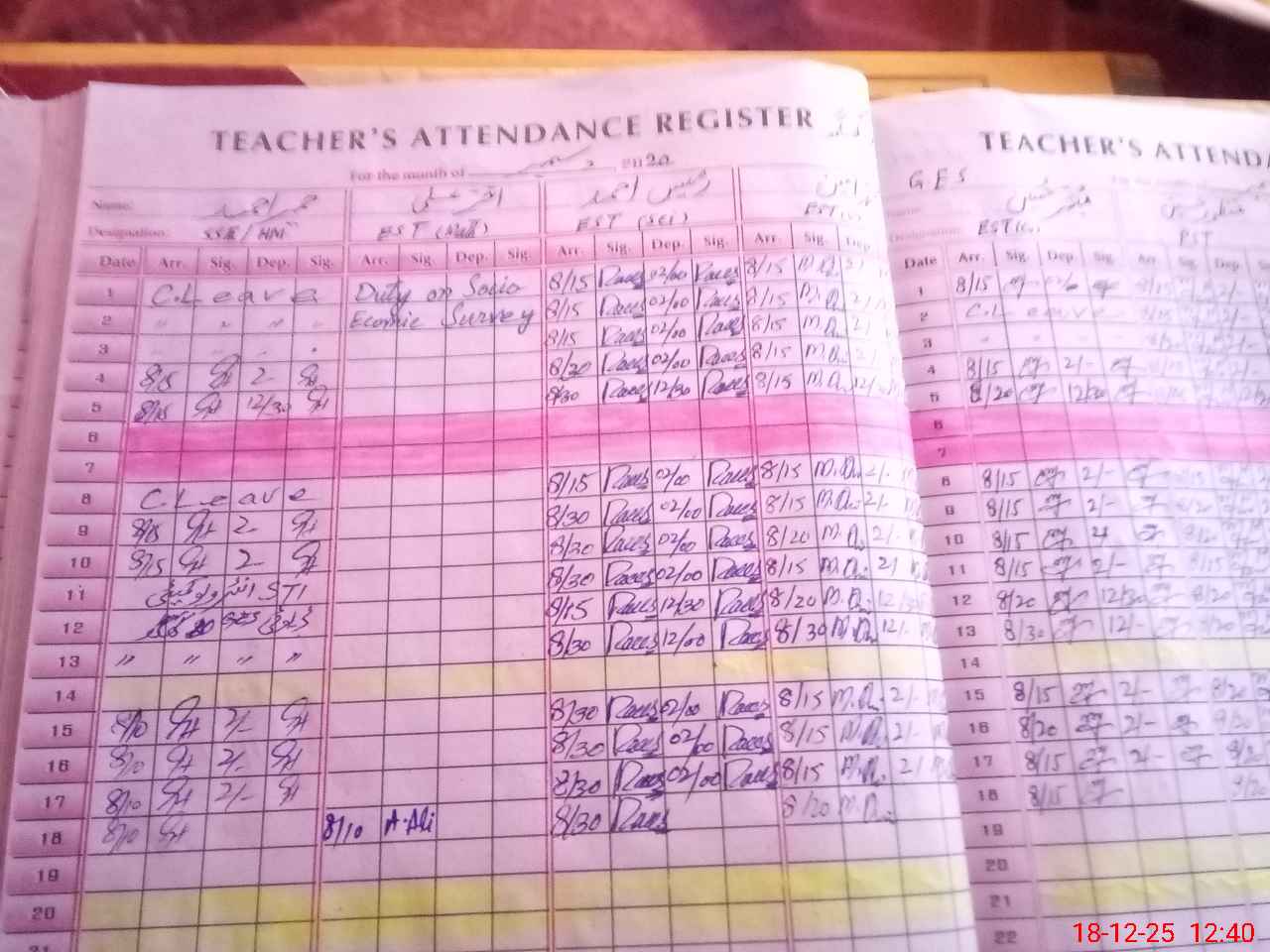 | CNIC | Full Name | Designation | R/C | Absence During Last Calender Month |