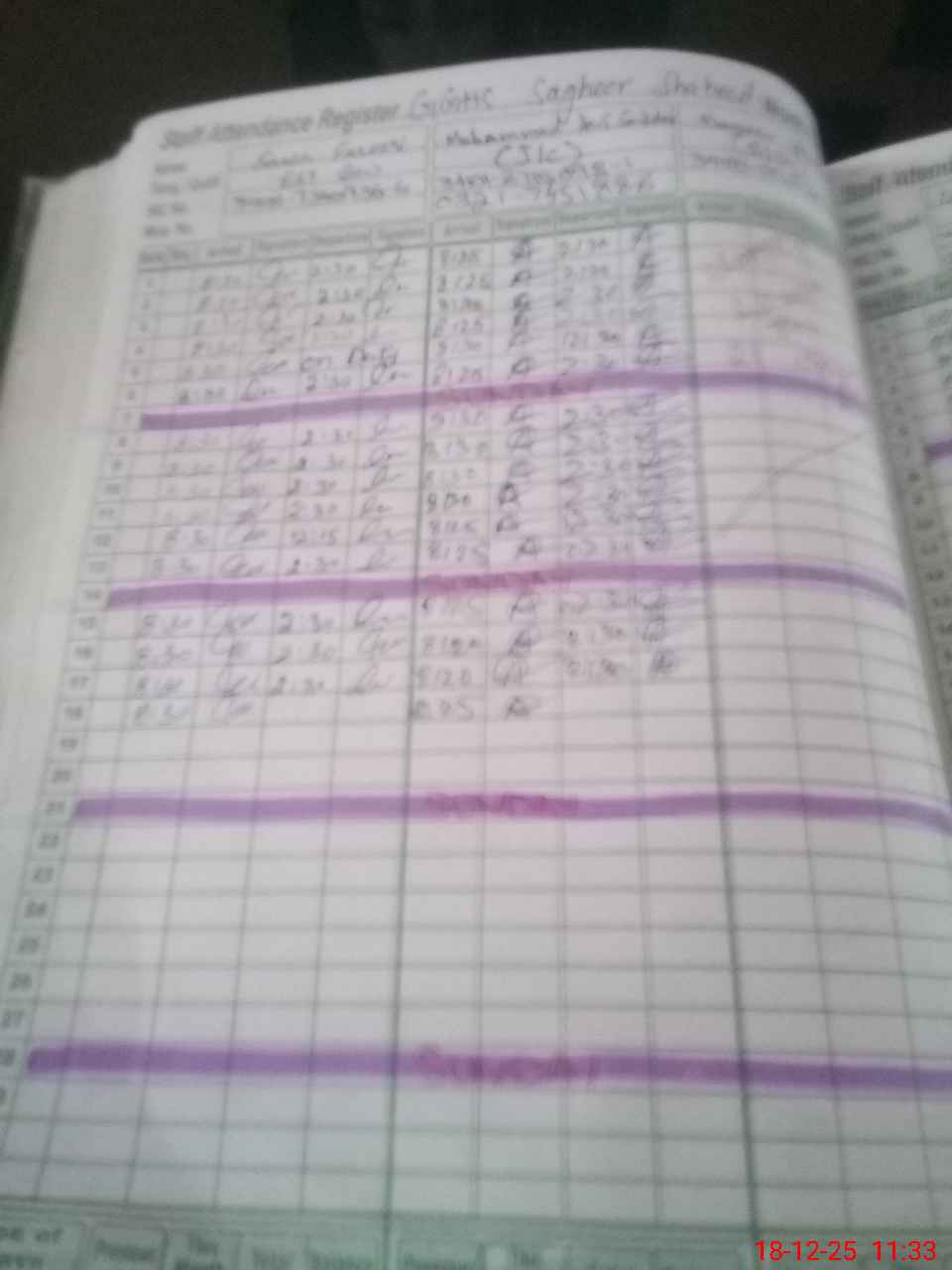 | CNIC | Full Name | Designation | R/C | Absence During Last Calender Month |