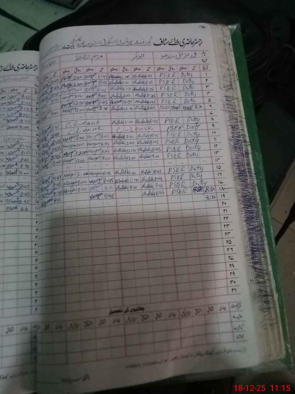 | CNIC | Full Name | Designation | R/C | Absence During Last Calender Month |
