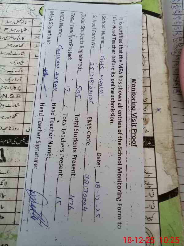 | EMIS Code: 38130004 | Name of School: GHS MAHNI | |||
