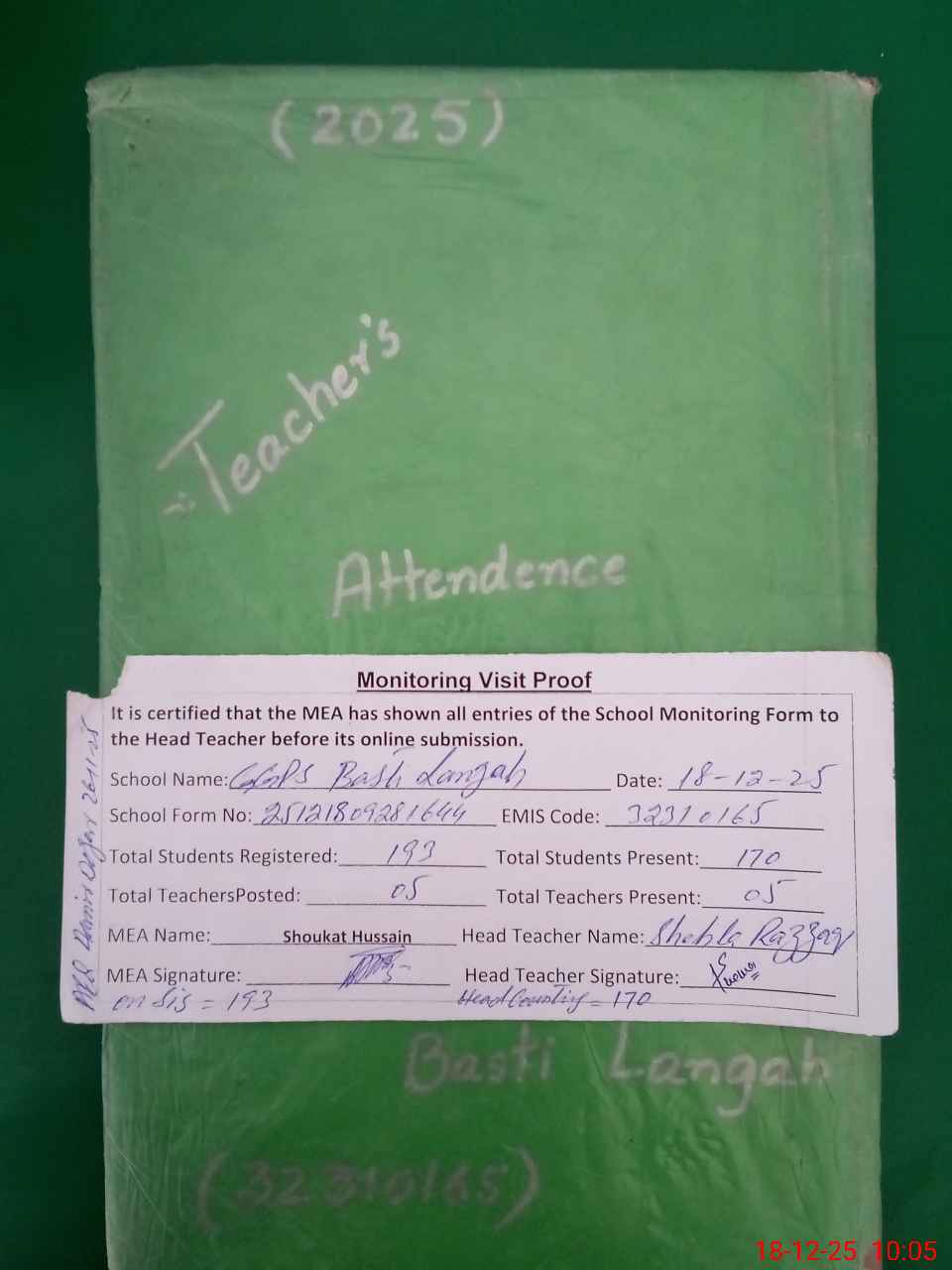 | EMIS Code: 32310165 | Name of School: GGPS BASTI LANGAH | |||