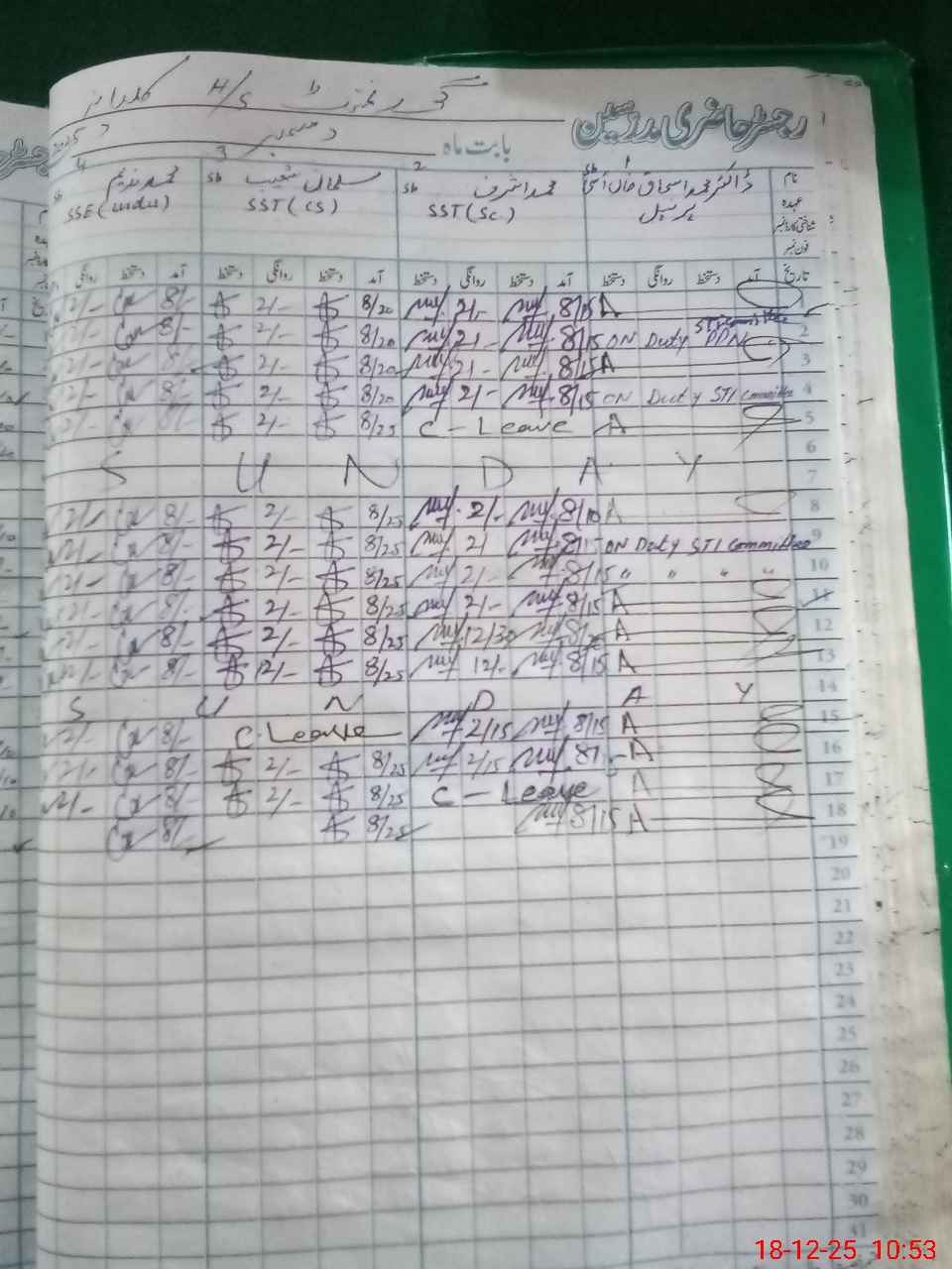 | CNIC | Full Name | Designation | R/C | Absence During Last Calender Month |