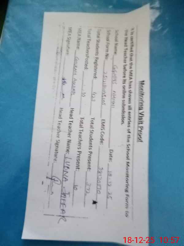 | Attendance Register | Head Teacher | MEA with School | Visit Proof |