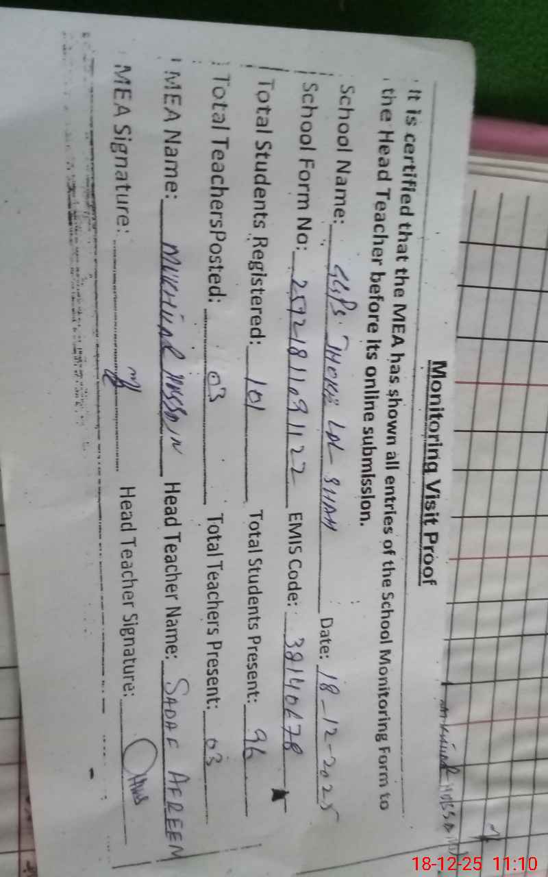 | EMIS Code: 38140678 | Name of School: GGPS JHOKE LAL SHAH | |||