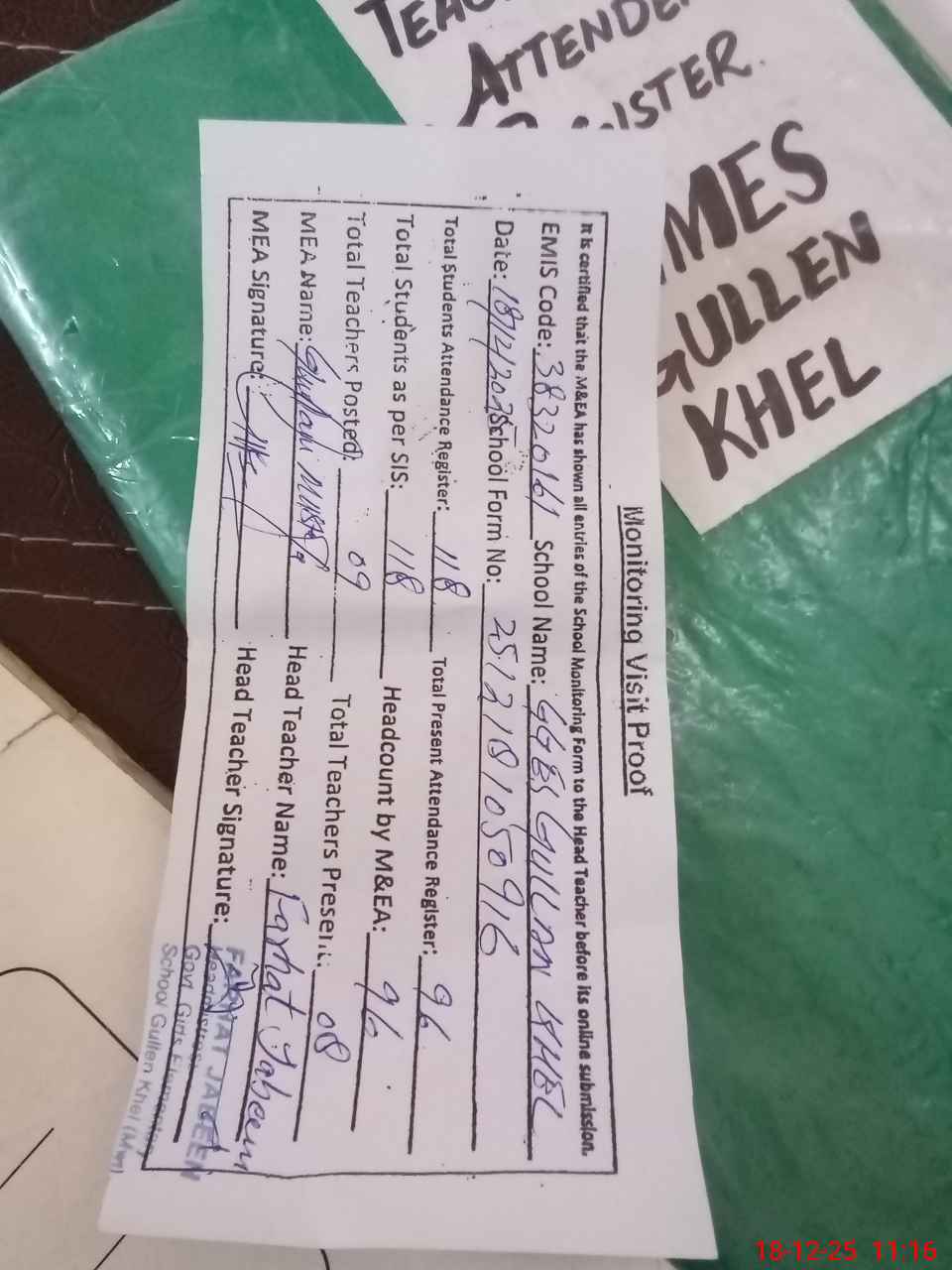 | EMIS Code: 38320161 | Name of School: GGES GULLAN KHEL | |||