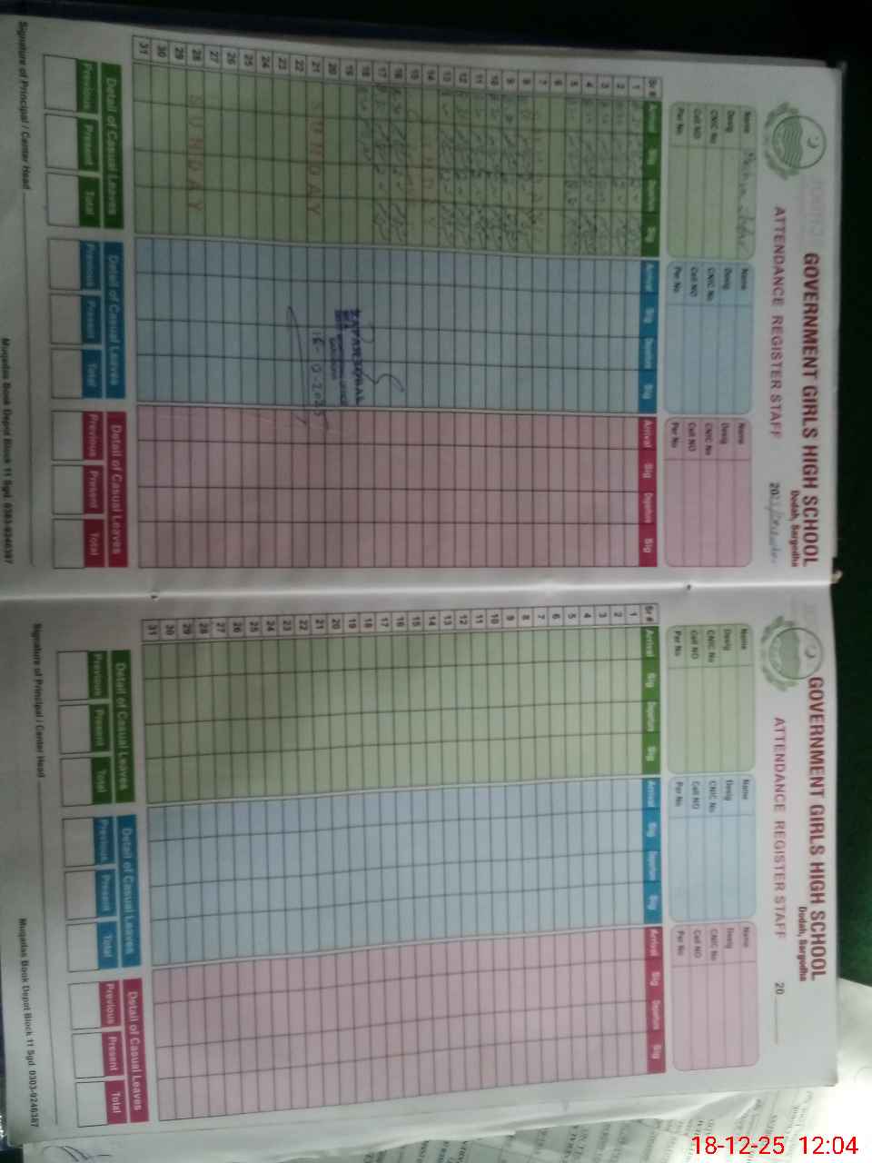 | CNIC | Full Name | Designation | R/C | Absence During Last Calender Month |