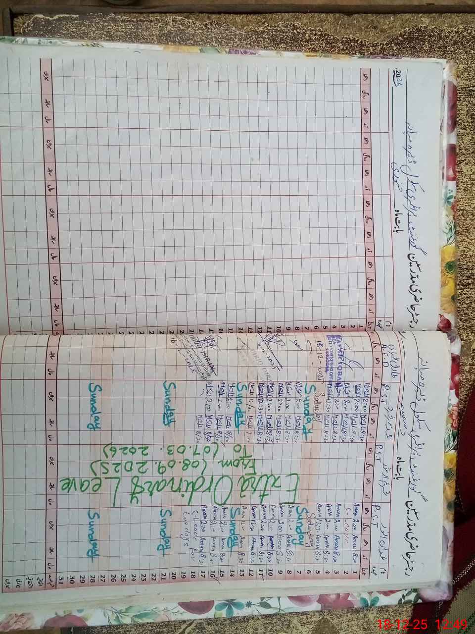 | Leave | Duty | Absent | Maternity | Medical | Ex- Pak |
