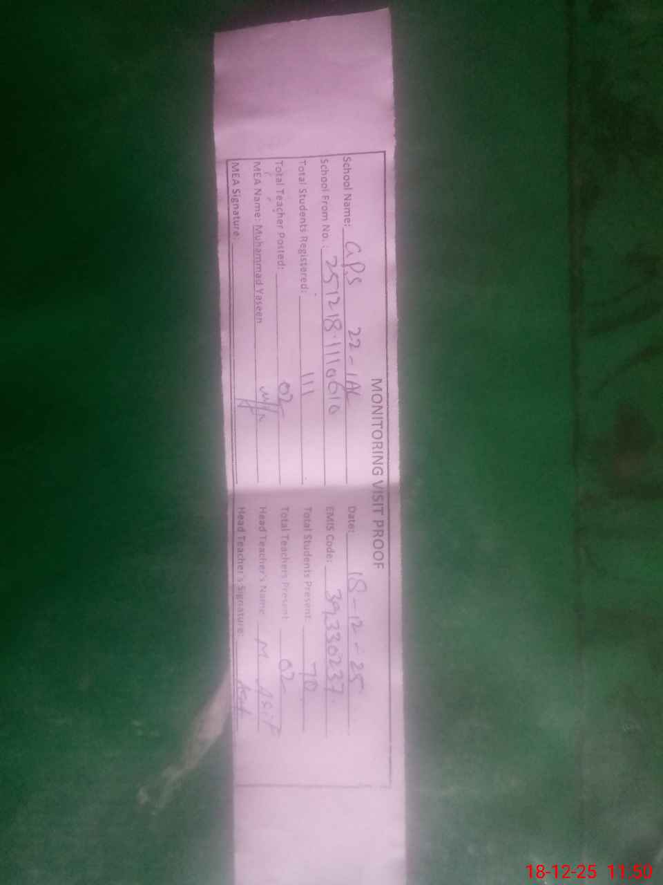 | EMIS Code: 39330237 | Name of School: GPS CHAK 22/1-AL | |||