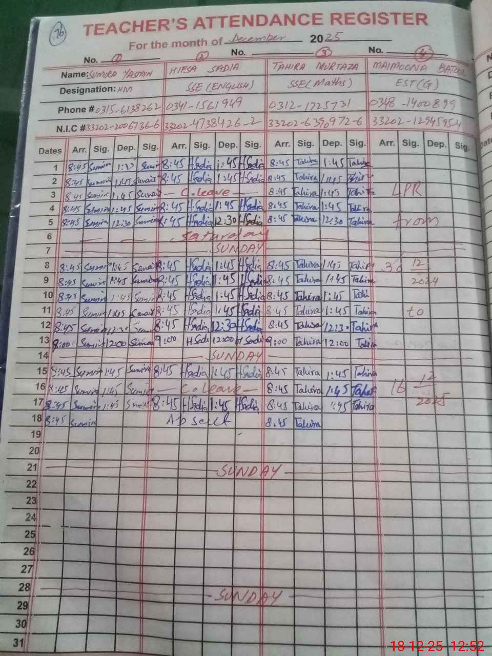 | 33**** | Hi**** Sa**** | SSE English | Contract | 0 | 0 | 0 | 0 | 0 | 0 | 0 | 0 | 0 | Absent (Un-Authorized) |