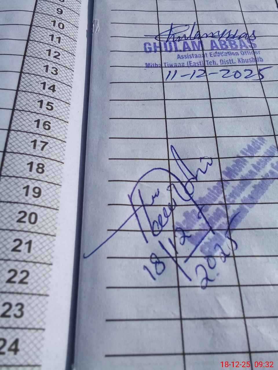 | District: KHUSHAB | Tehsil: KHUSHAB | Markaz: MITHA TIWANA (EAST) (MALE) | Level: Primary | |