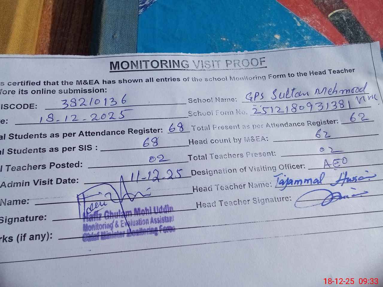 | EMIS Code: 38210136 | Name of School: GPS SULTAN MEHMOOD VIRK | |||