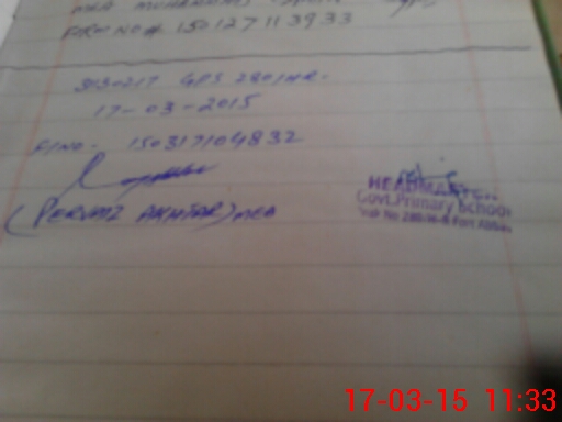 | Name: M.**** Designation: (School Headmaster's/Headmistress's) PTC/JV Phone/Cell Number: 03**** |