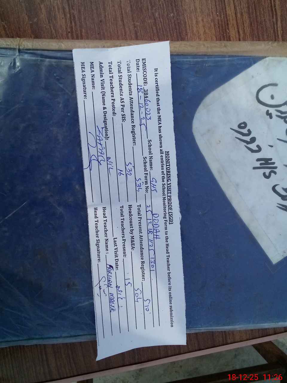 | EMIS Code: 38460023 | Name of School: GHS DODHA | |||