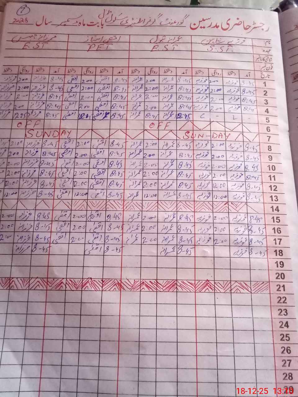 | CNIC | Full Name | Designation | R/C | Absence During Last Calender Month |