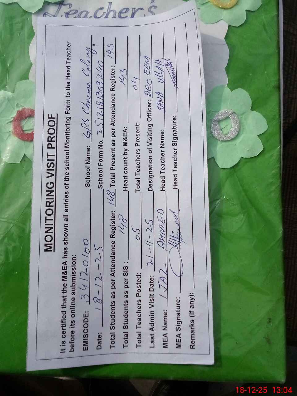 | EMIS Code: 34120100 | Name of School: GPS CHEEMA COLONY | |||