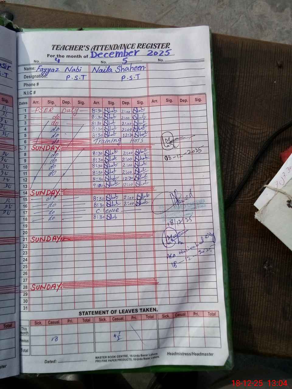 | Name: SA**** UL**** Designation: (School Headmaster's/Headmistress's) PST Phone/Cell Number: 03**** |