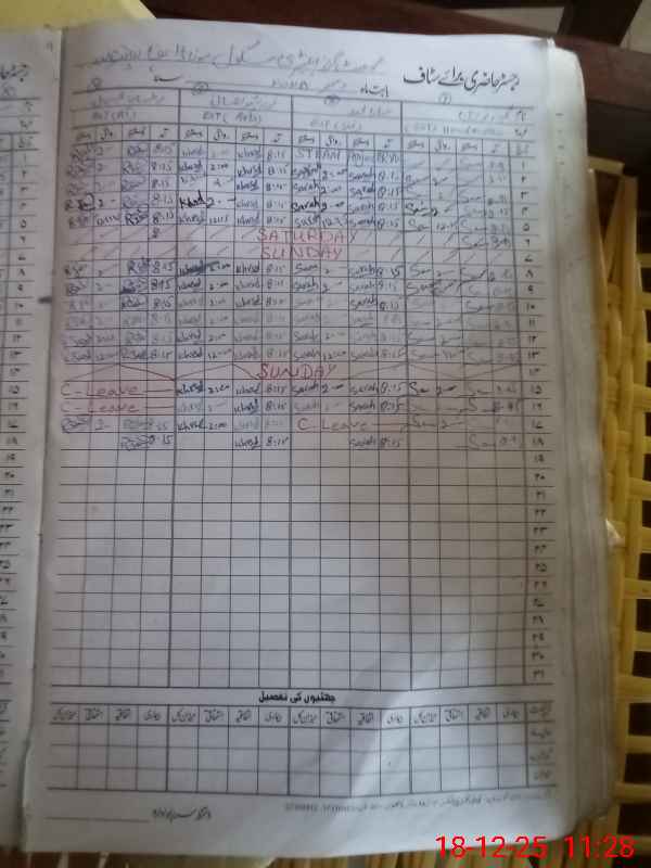 | CNIC | Full Name | Designation | R/C | Absence During Last Calender Month |