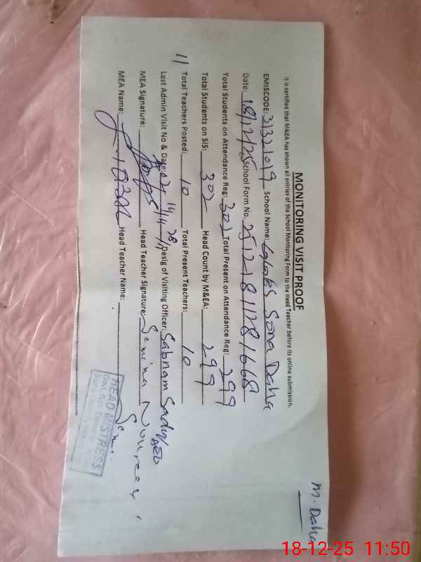 | Attendance Register | Head Teacher | MEA with School | Visit Proof |