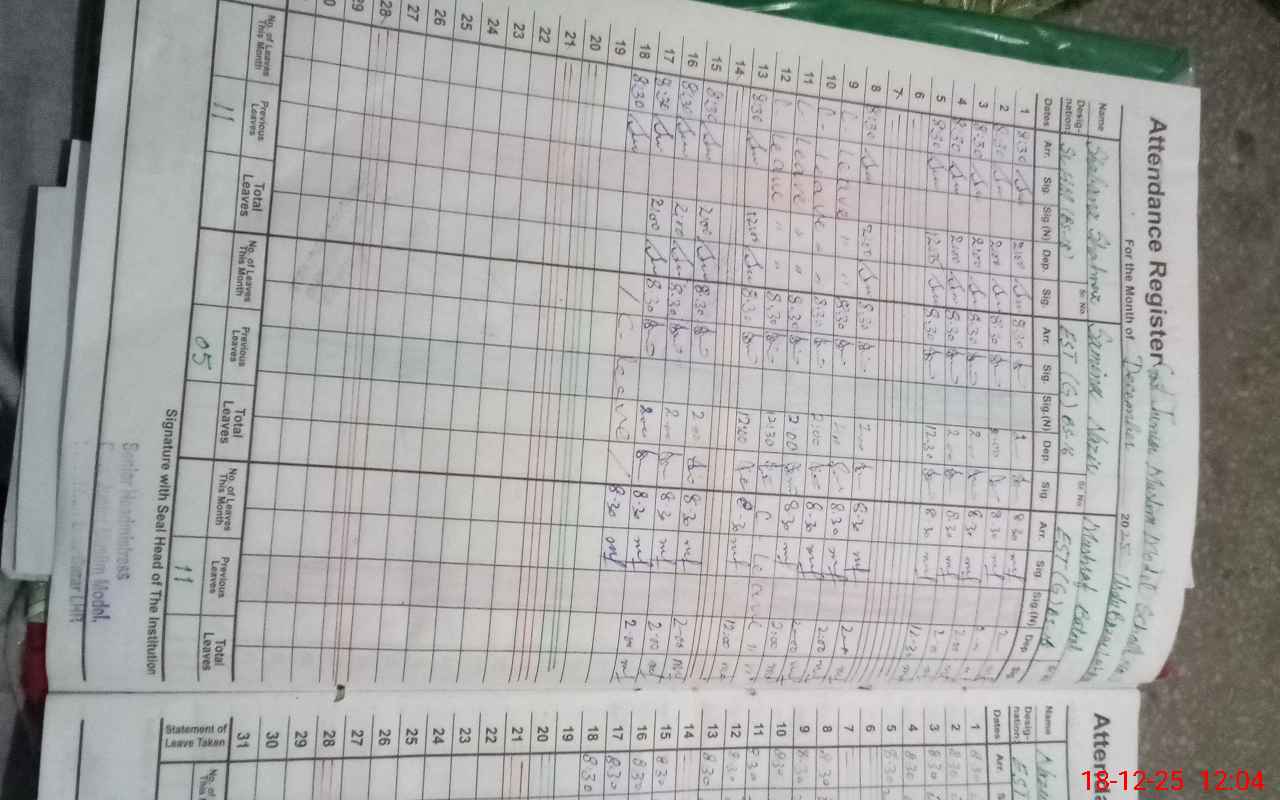 | 34**** | Sa**** Ba**** | PST Science/Maths | Regular | 0 | 0 | 0 | 0 | 0 | 0 | 0 | 0 | 0 | Maternity |
