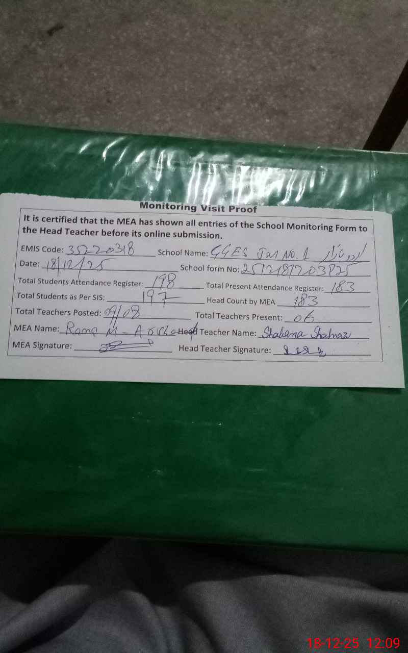 | EMIS Code: 35220318 | Name of School: GGES JUNIOR MUSLIM MODEL NO.1 URDU BAZAR | |||