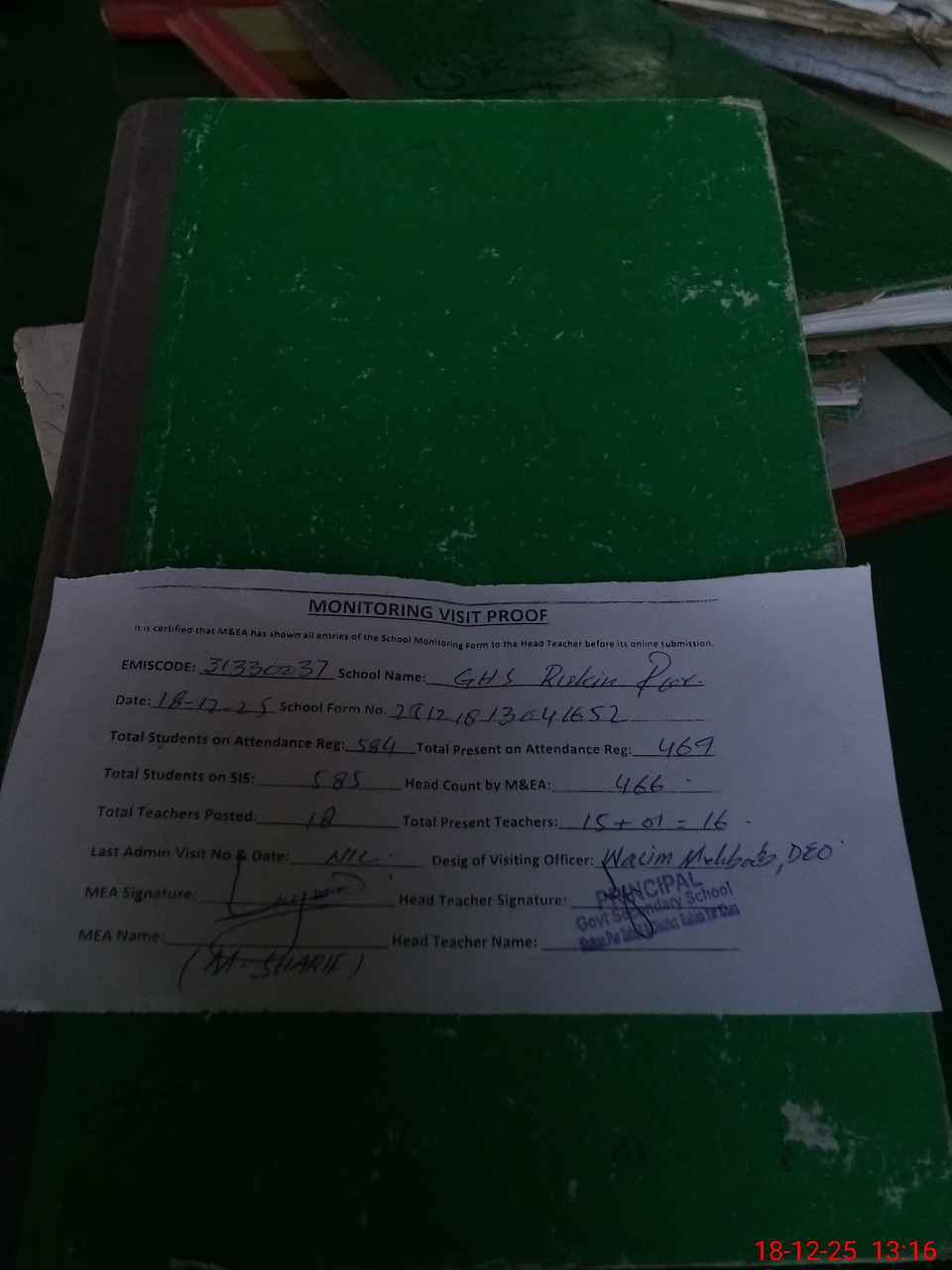 | EMIS Code: 31330037 | Name of School: GHS RUKEN PUR | |||