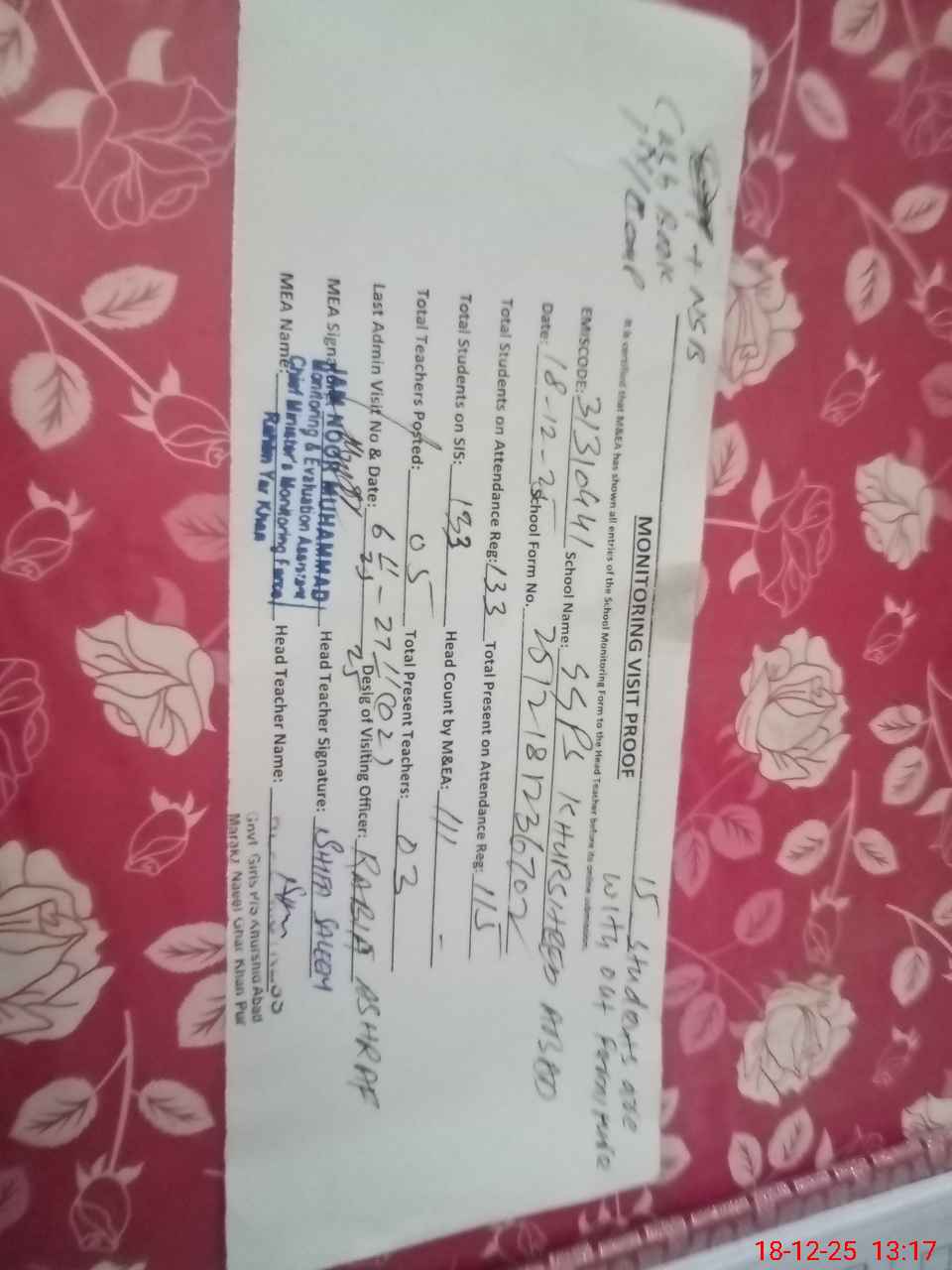 | EMIS Code: 31310441 | Name of School: GGPS KURSHEED ABAD | |||