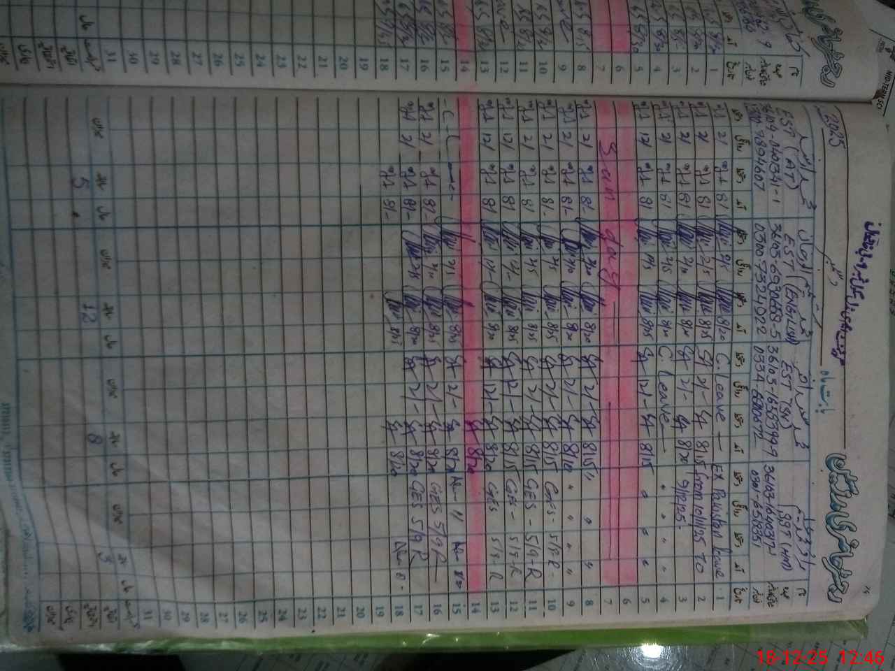 | CNIC | Full Name | Designation | R/C | Absence During Last Calender Month |