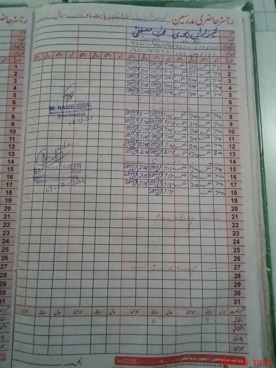 | CNIC | Full Name | Designation | R/C | Absence During Last Calender Month |