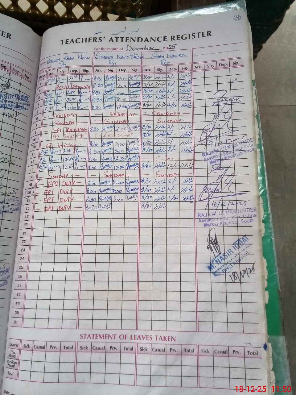 | Name: RI**** KH**** Designation: (School Headmaster's/Headmistress's) pst Phone/Cell Number: 03**** |