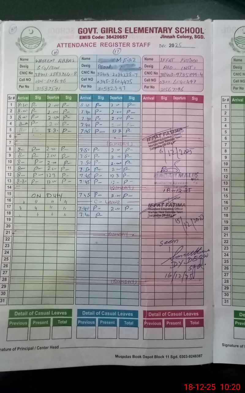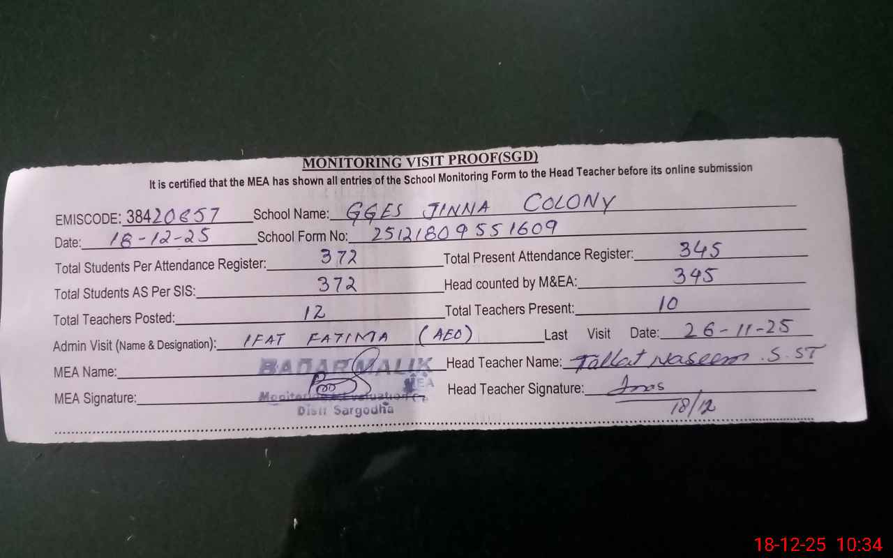 | EMIS Code: 38420657 | Name of School: GGES JINNAH COLONY | |||